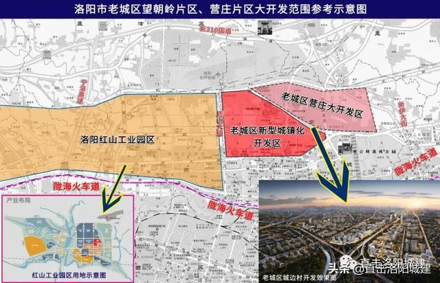 未来翠云峰、望朝岭开发区组成洛阳古都科技产业区;红山开发区与洛新开发区组成洛阳工业园区;洛孟一体化与孟津主城区、大学城组成洛北新城。