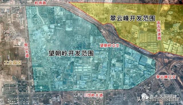 望朝岭大开发区域实施范围:西至周山大道、东至翠云峰立交、南至邙岭大道和金翠东路、北至机场路。